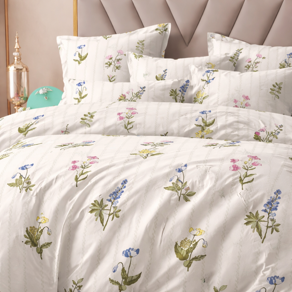With a generous 12-inch deep pocket, it fits most king-size mattresses effortlessly. The glace cotton fabric remains cool, breathable, and skin-friendly, making it ideal for everyday use in all seasons. Paired with matching pillow covers, this bed set adds both comfort and elegance to your bedroom décor.