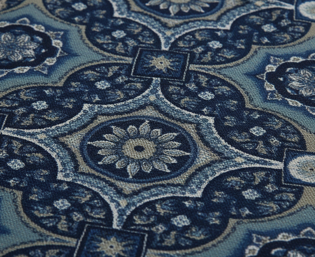 La Fiesta Blue stamp print cotton design